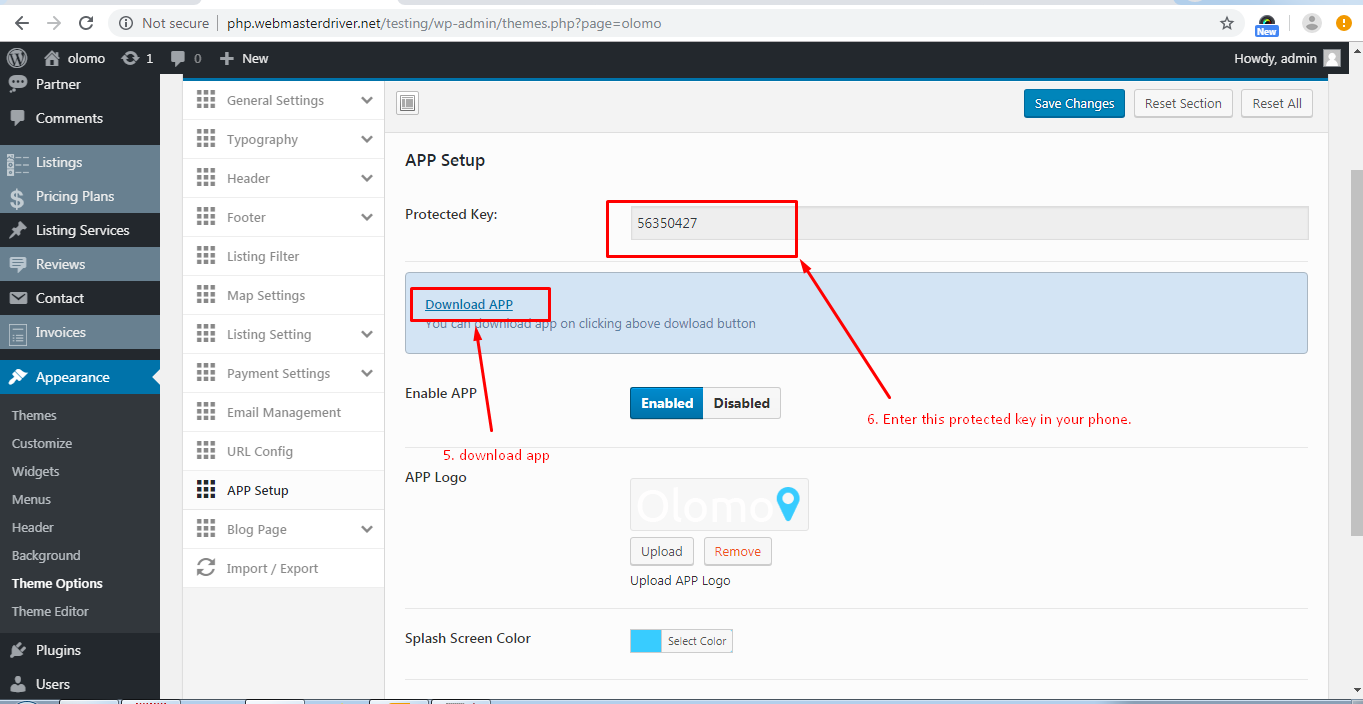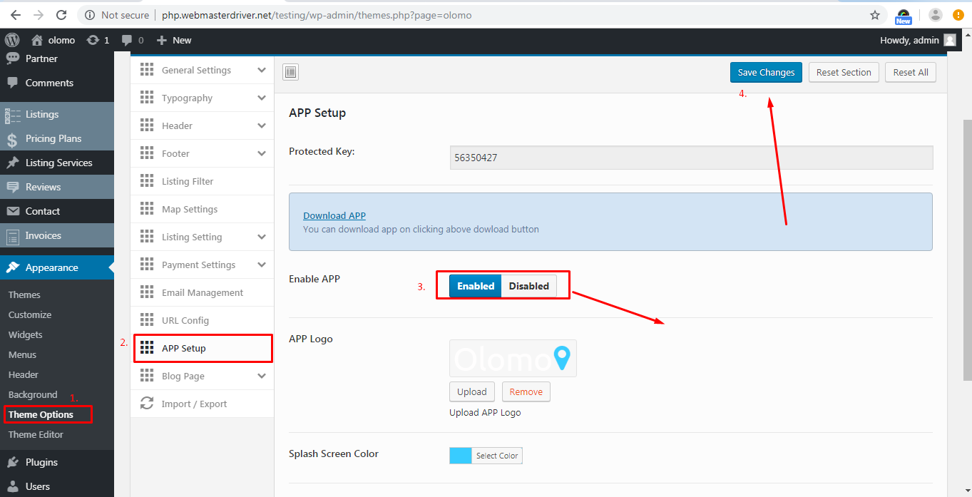 Step4. Copy the Protected key from Theme Option and paste it, in your android mobile app.