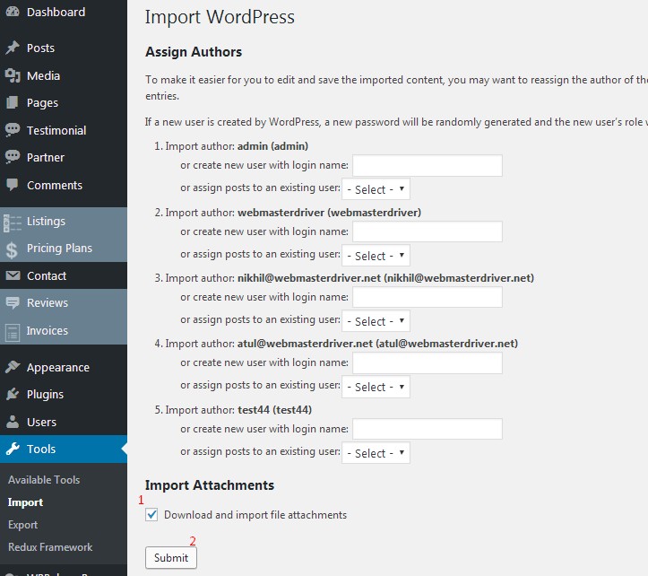 Please open the "Olomo CSV Importer" option and you can now start to add bulk listings from CSV file. Please download the CSV sample and make changes then upload it! Please check the screenshot here:
