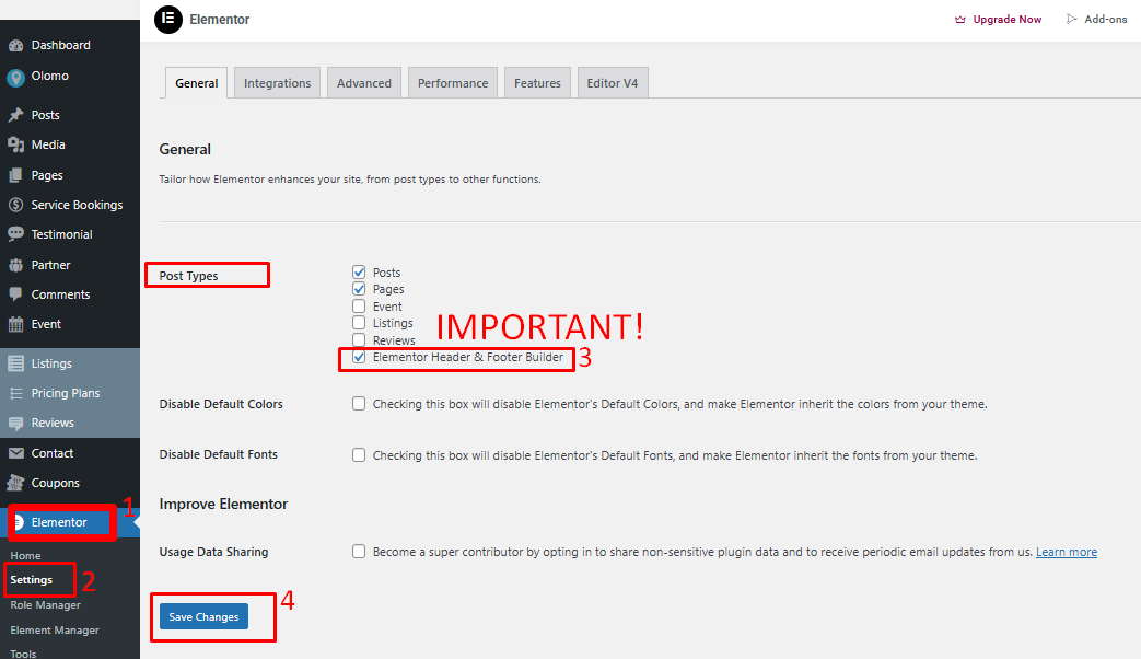 Go to Elementor Settings and select the checkbox "Elementor Header & Footer Builder" and atlast click on Save changes button.Now you have a website just like our demo, with the pictures replaced by grey images.