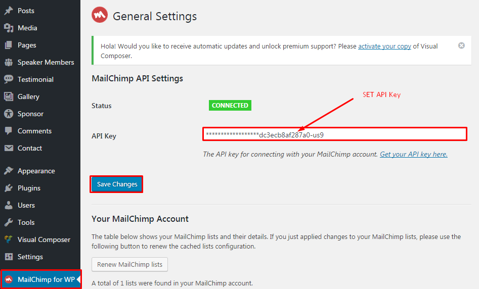 For detailed inforamtion and support on this plugin, please go to: https://wordpress.org/plugins/mailchimp-for-wp/