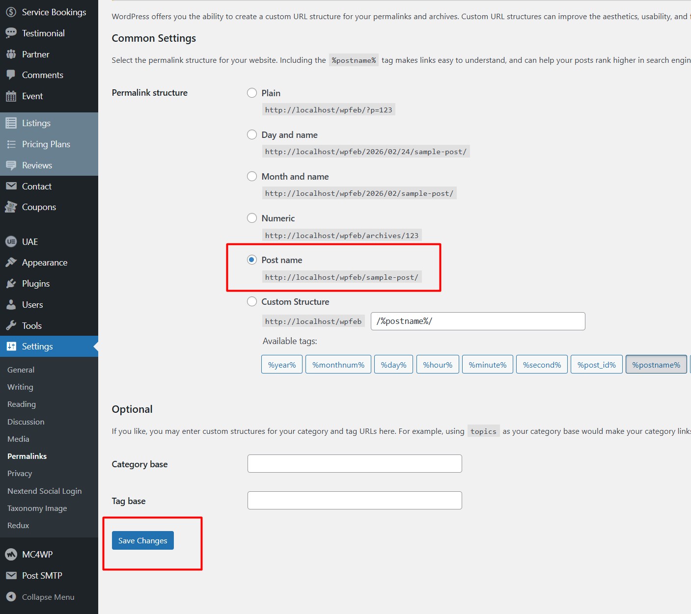 Step4. Click on Save Changes.