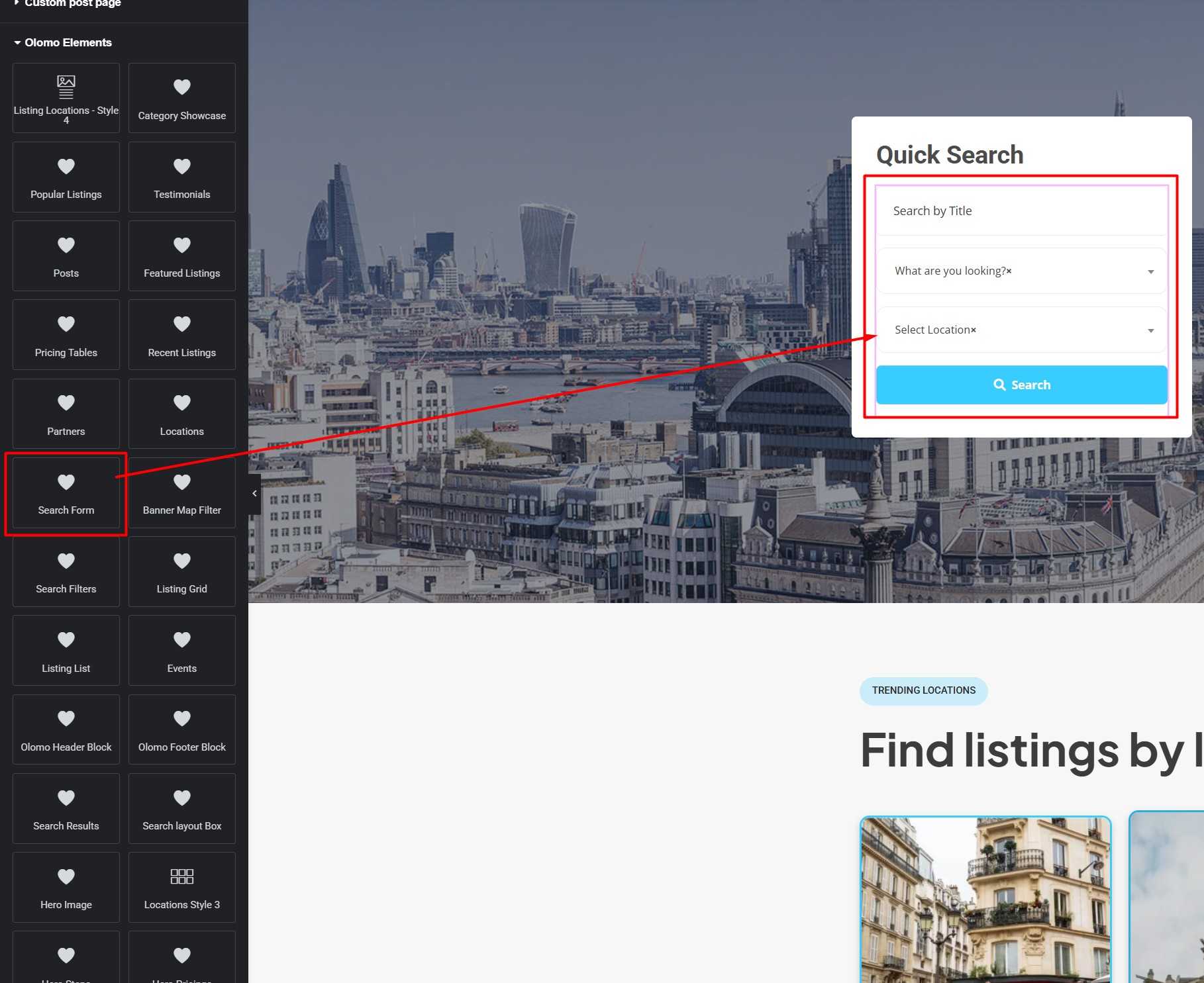 Then it add the search filter functionality to our theme & search will appear on Home Pages. You can add search filter form using Elementor Page builder, Please check the screenshot here: