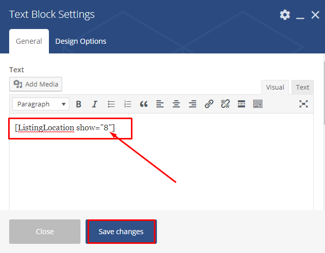5.1. Add Text Block in Page Editer after then Paste This Shortcode Code:- [ListingLocation show="8"]