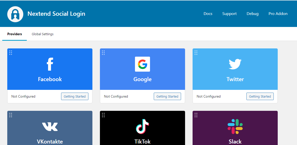 After installation and activation, you will be able to add Social websites Login and Sign up front end registrations.